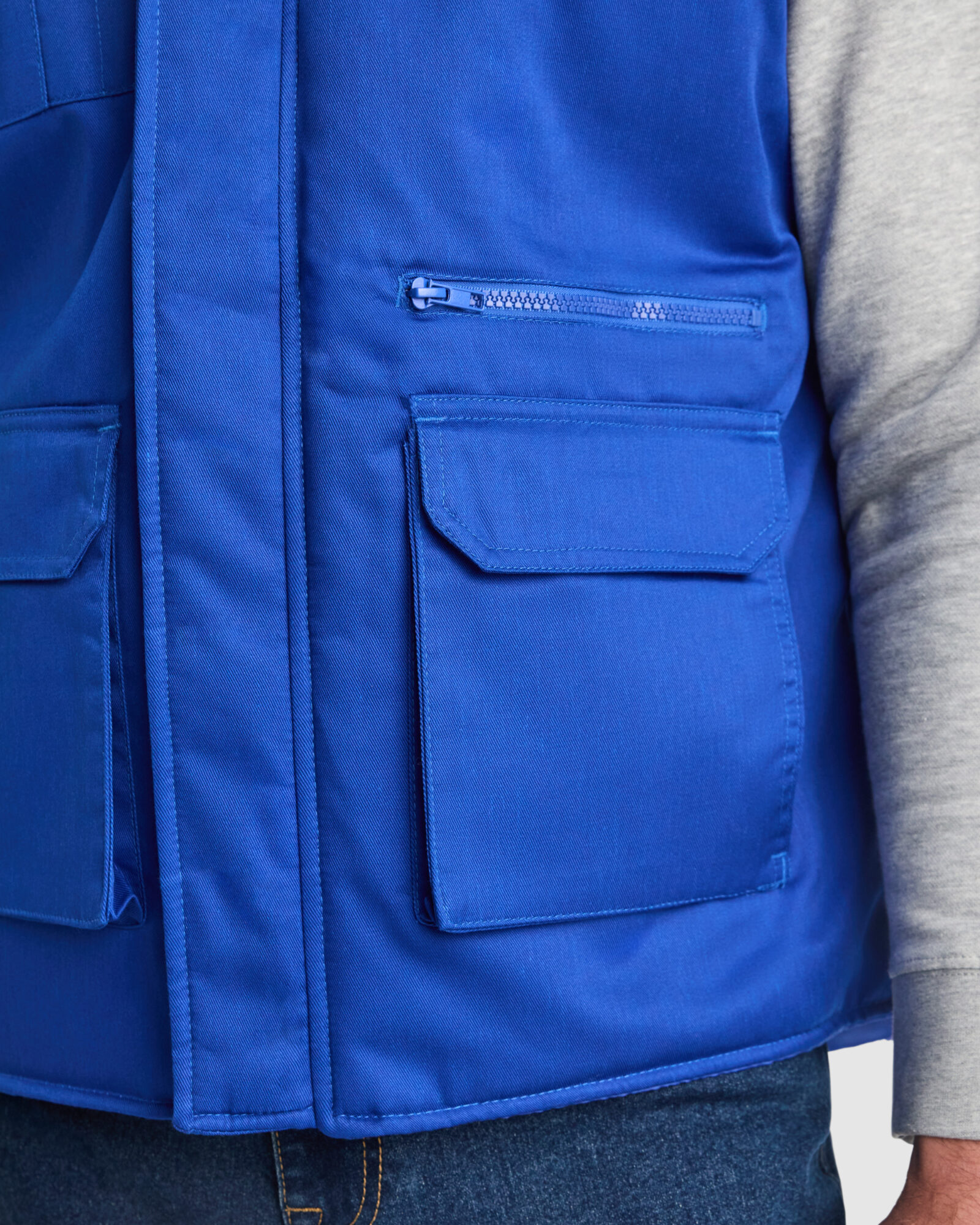 Chaleco laboral multibolsillos acolchado con faldón trasero.