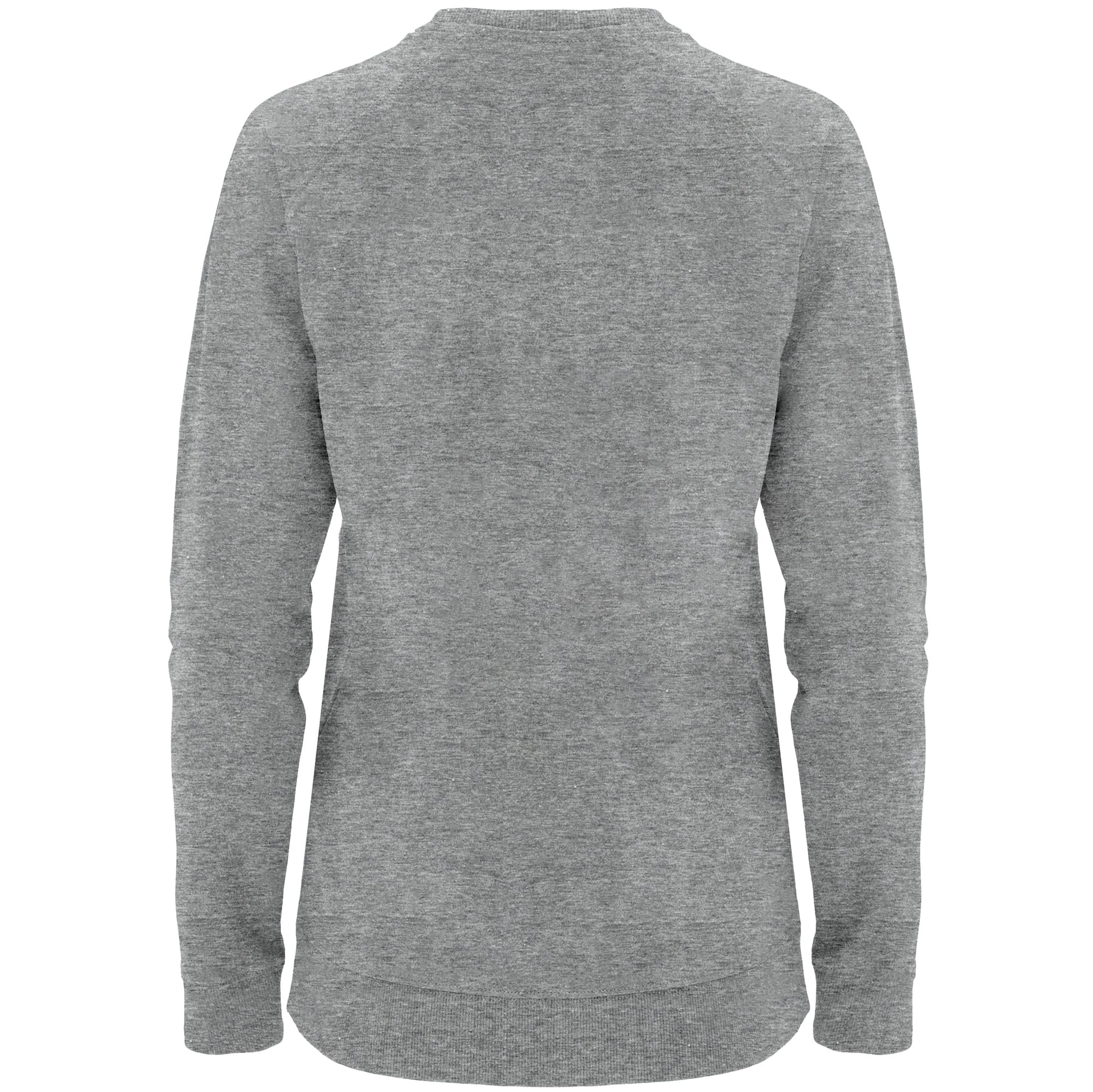 Sudadera entallada de manga larga estilo ranglán. Con cuello, puños y cintura, en canalé 2×1. Cuello redondo con cubrecosturas de refuerzo en el interior del cuello. Detalle frontal de costuras cruzadas, con remallado en tejido canalé 2×1.
