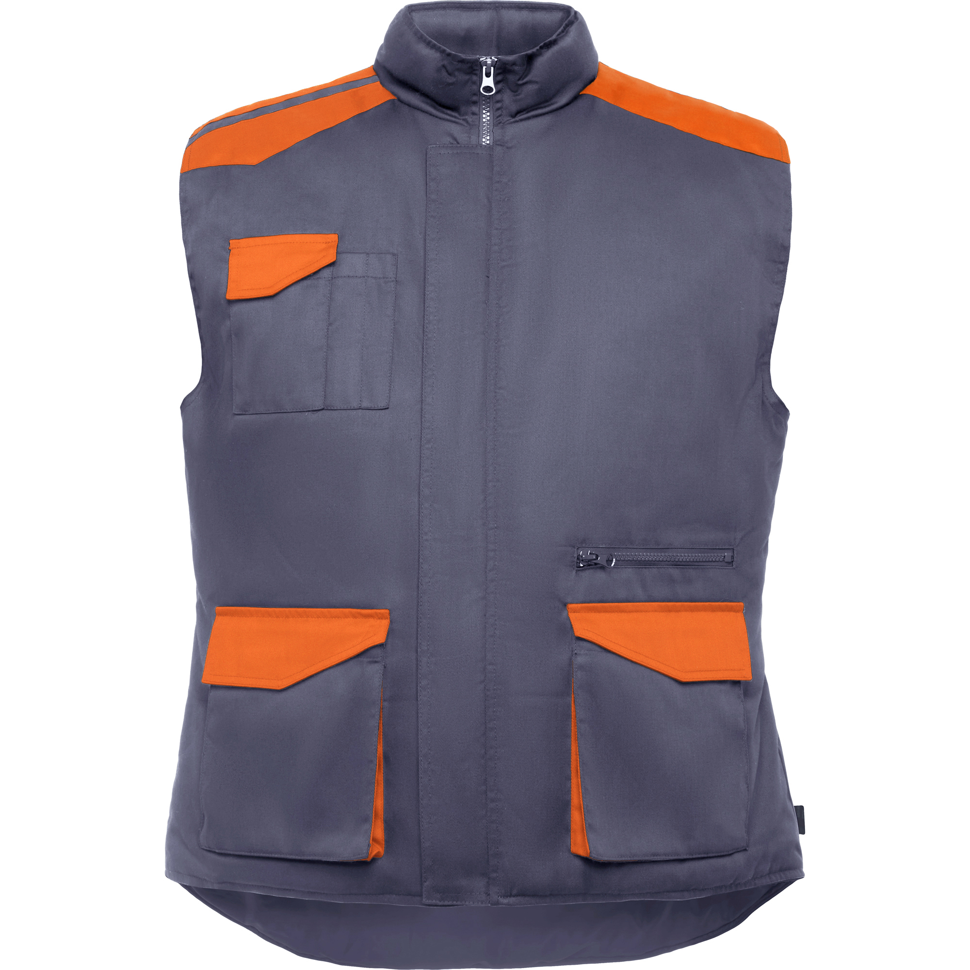 Chaleco laboral multibolsillos acolchado con faldón trasero.