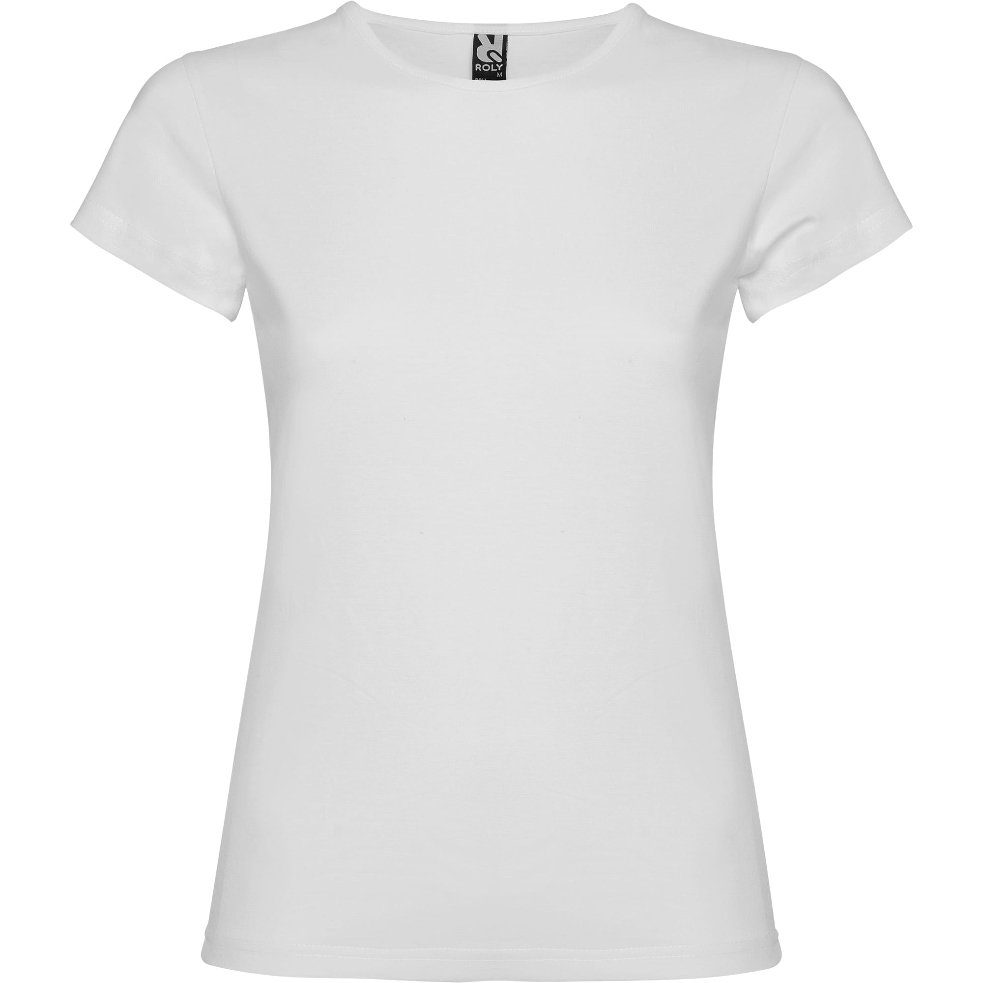 Camiseta de manga corta con elastano entallada en cintura. Cuello redondo con ribete al tono del mismo tejido.