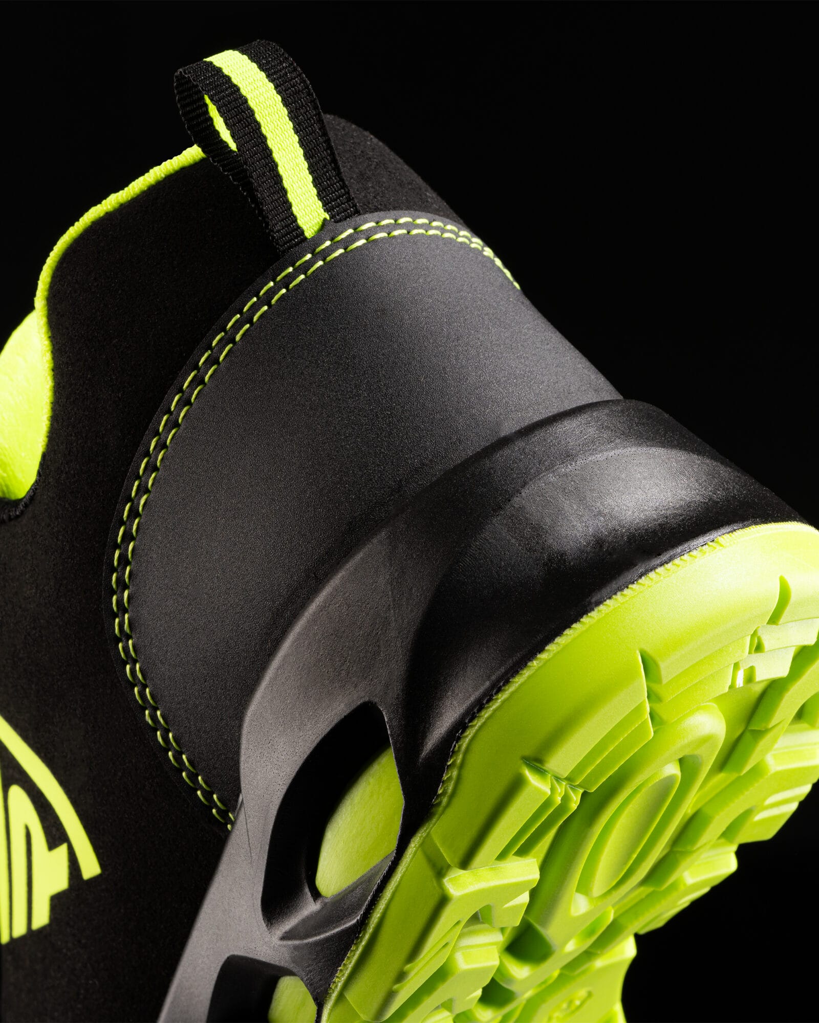 Calzado laboral de estilo deportivo, hecho en microfibra nobuck y refuerzo en zona del talón.