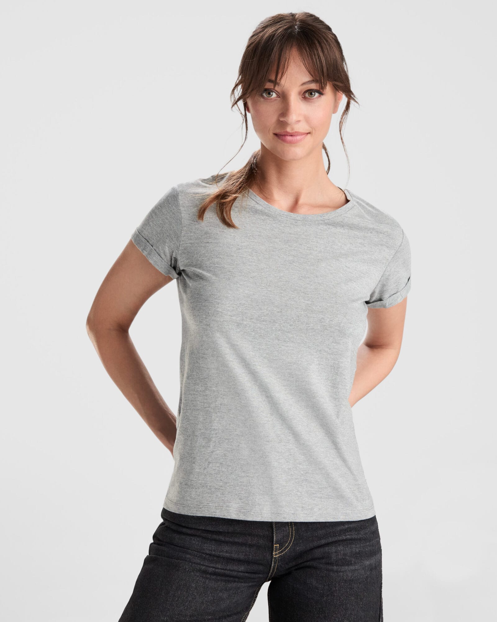 Camiseta de manga corta ligeramente entallada en cintura. Cuello redondo del mismo tejido. Cubrecosturas en cuello del mismo tejido. Detalle de costuras de refuerzo en dobladillos.