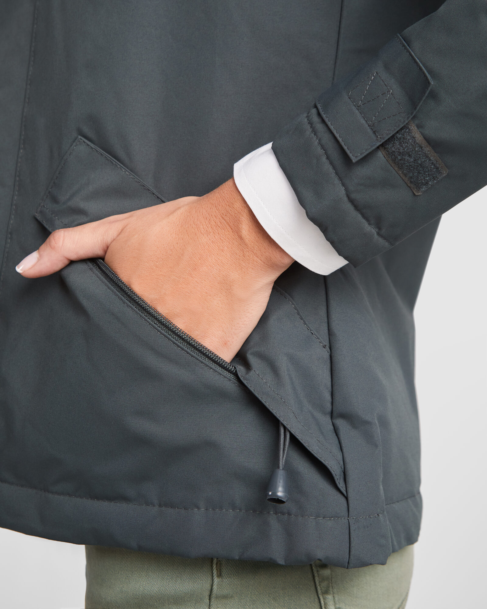 ·Puños ajustables con trabillas y velcro.