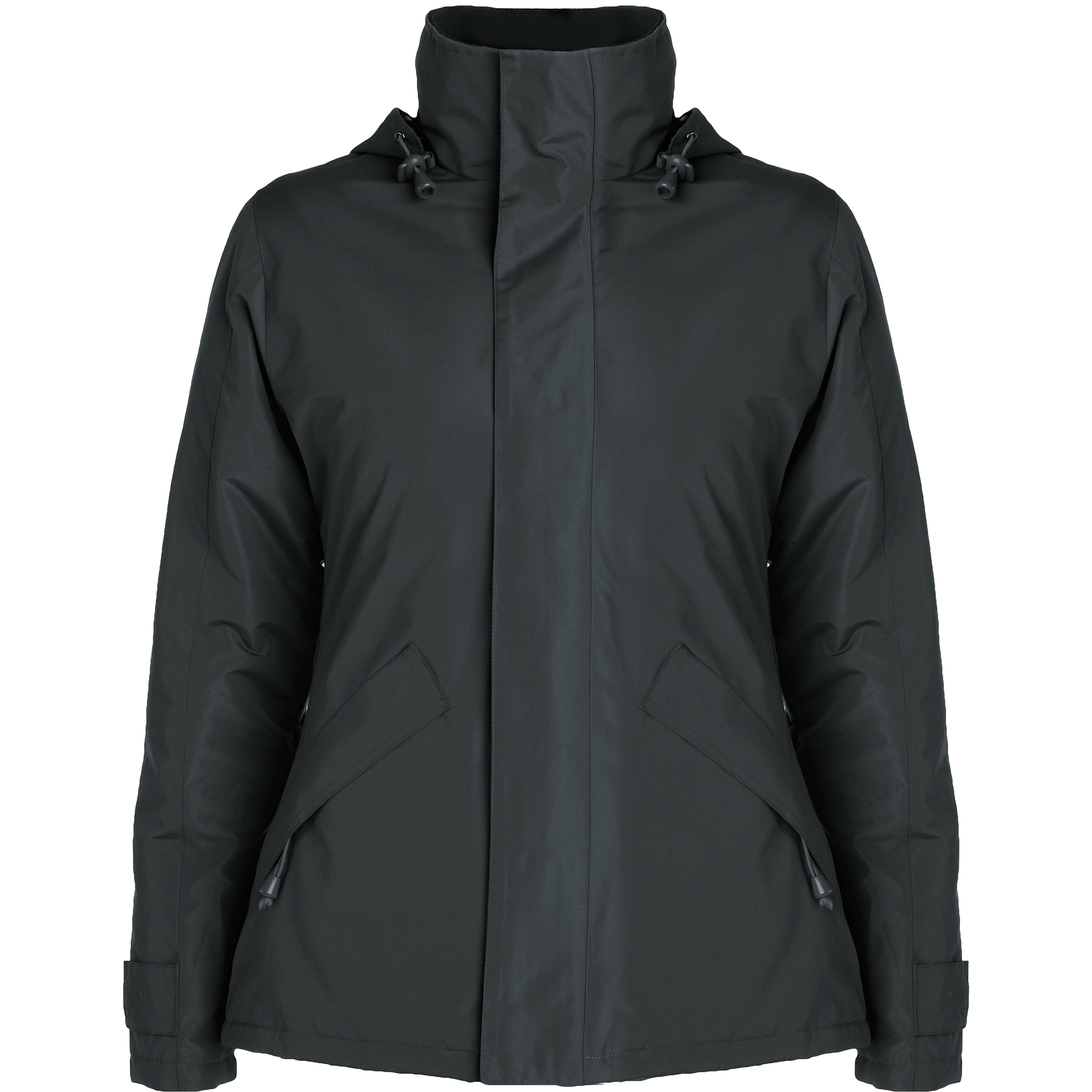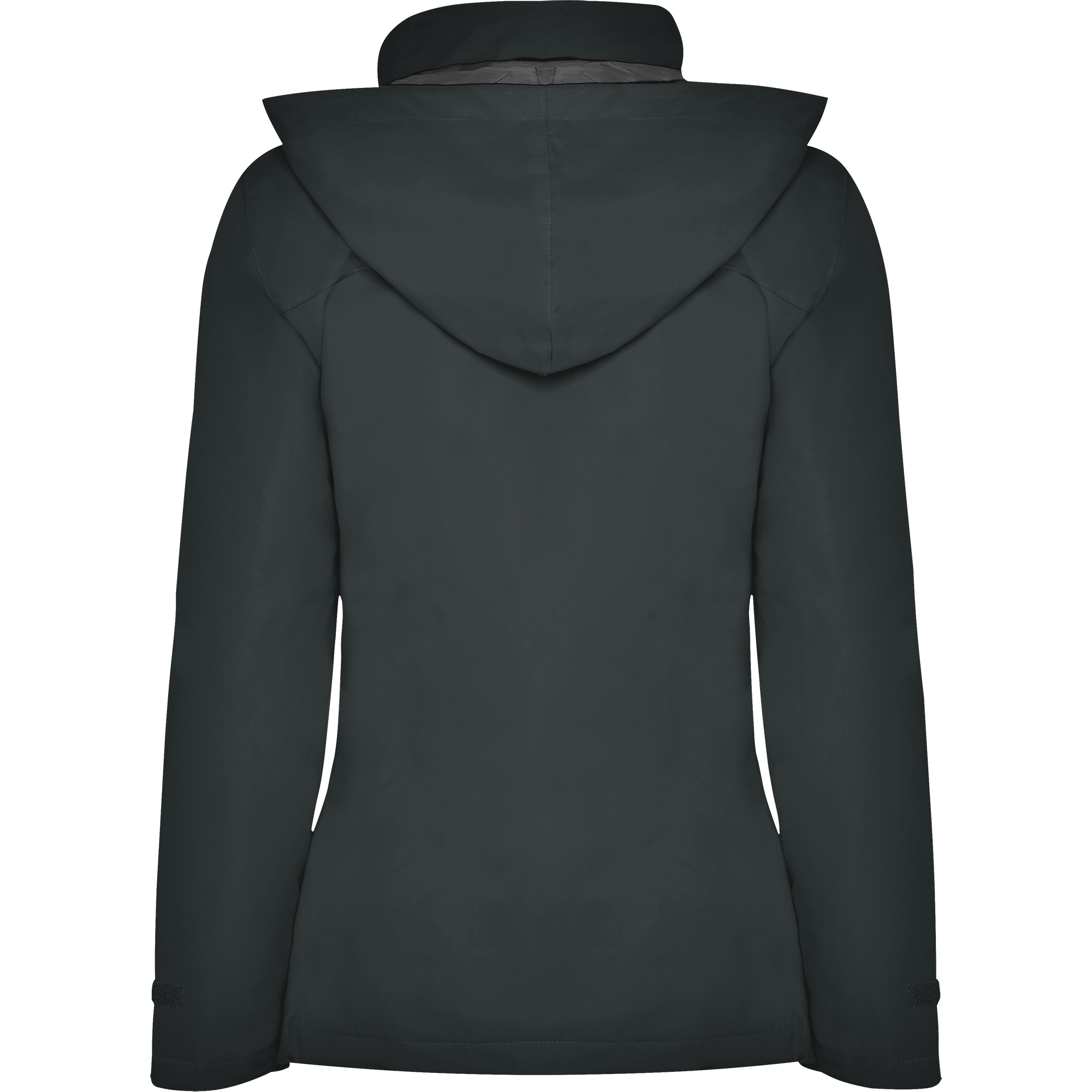 ·Cuello alto con capucha plegada y extraíble en cuello con cierre velcro.