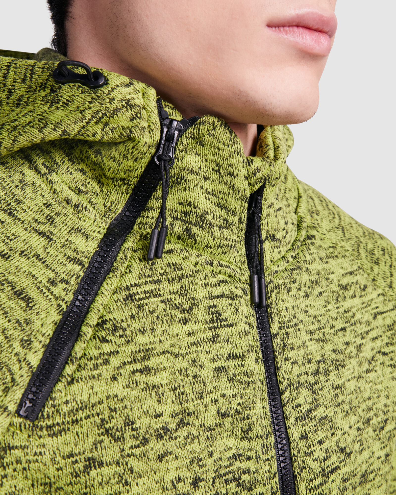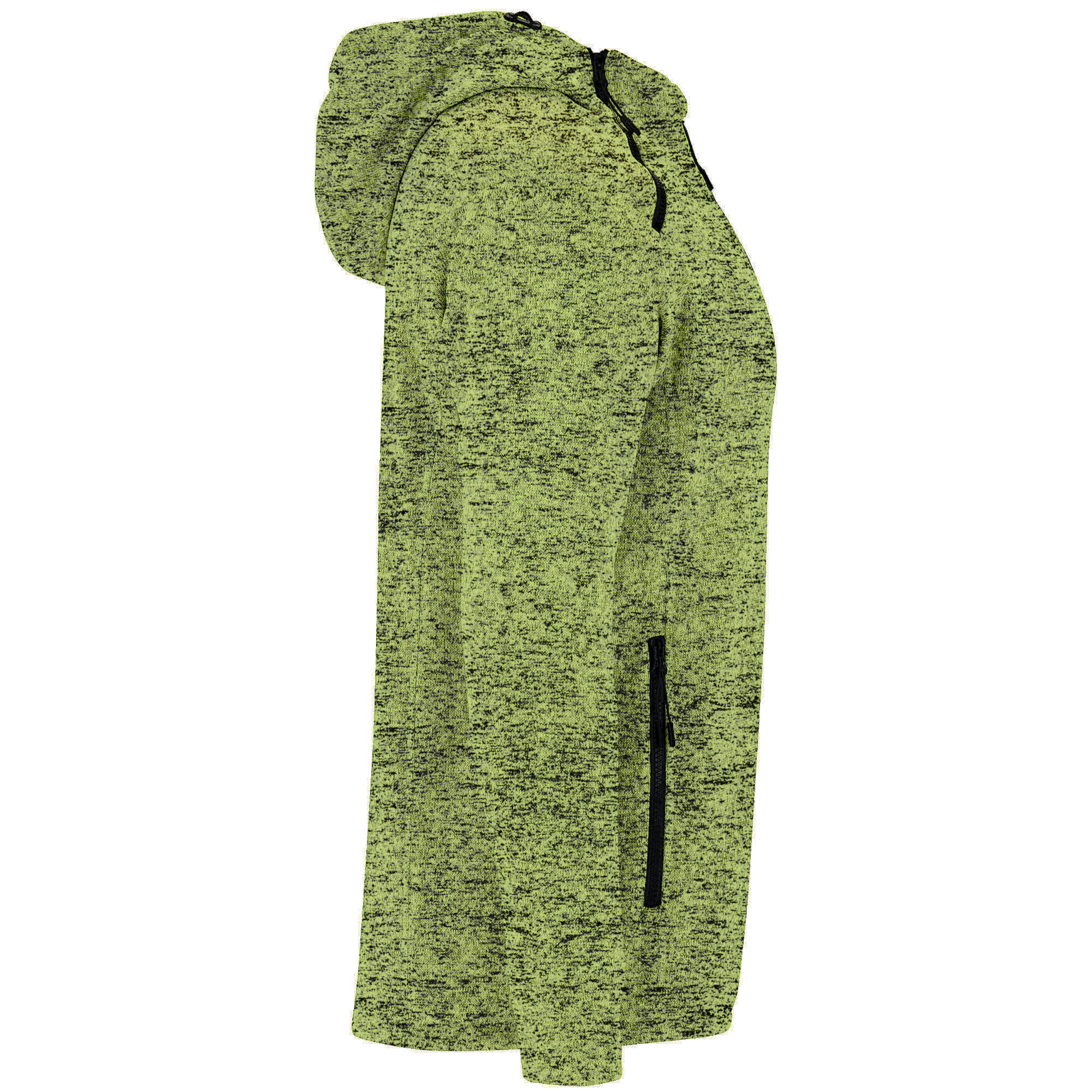 Sudadera de punto felpado con capucha. Cremalleras inyectadas con tiradores de diseño, cremallera central con protector de barbilla, y una segunda cremallera decorativa en cuello para facilitar apertura. Cuello alto con ajustadores de diseño y cubrecosturas interior. Dos bolsillos frontales con cremallera. Bajo trasero más largo que el delantero, con ajustadores de diseño.