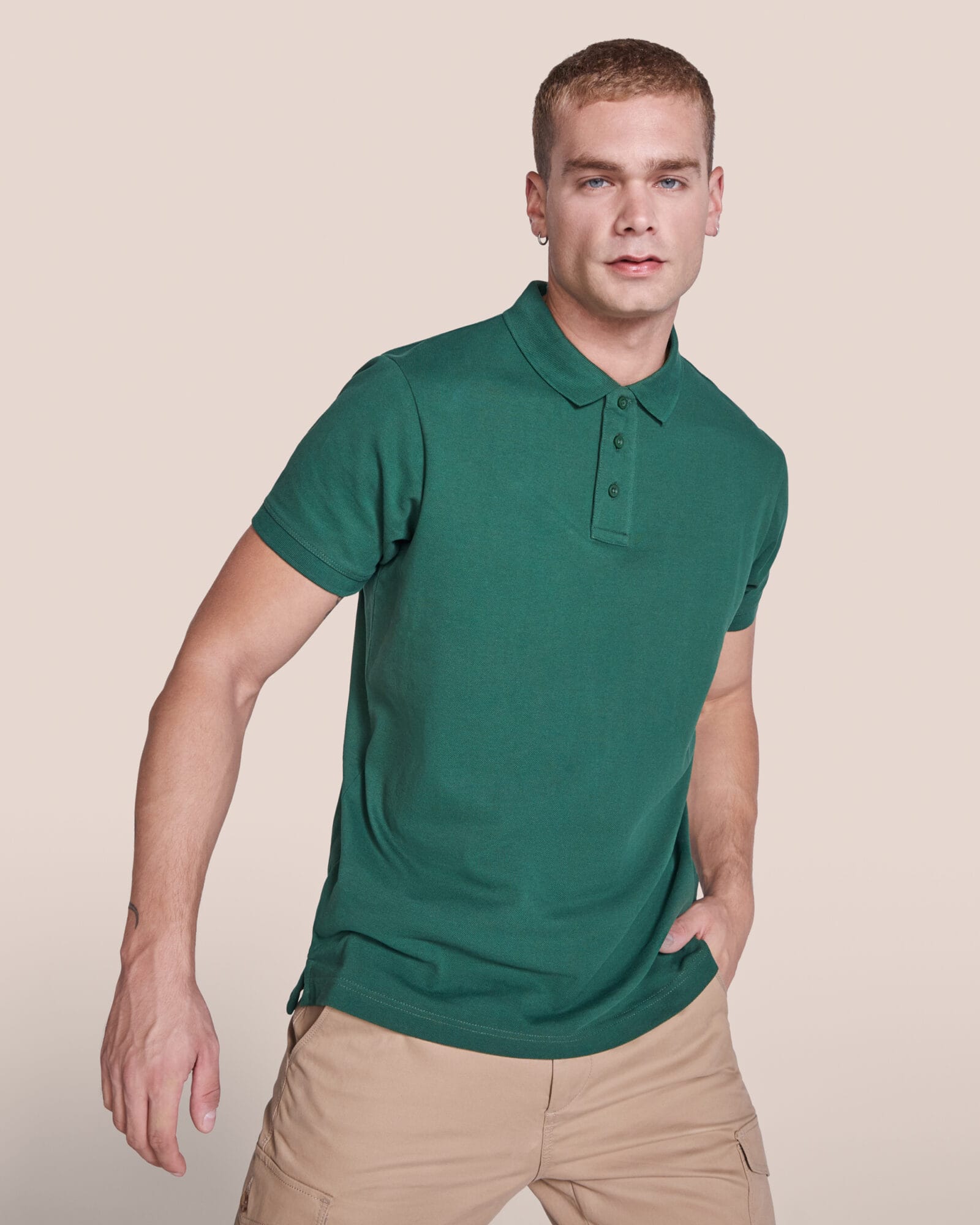 Polo de hombre con manga corta de alta calidad, en tejido confortable. Cuello con tapeta de tres botones a tono con el tejido. Solapa y ribete de la manga acanalado. Cubrecostura de refuerzo en el interior del cuello. Aperturas laterales con cubrecosturas a tono. El patronaje de la espalda es ligeramente más largo que el delantero. Doble costura en hombros, mangas y bajo de la prenda.