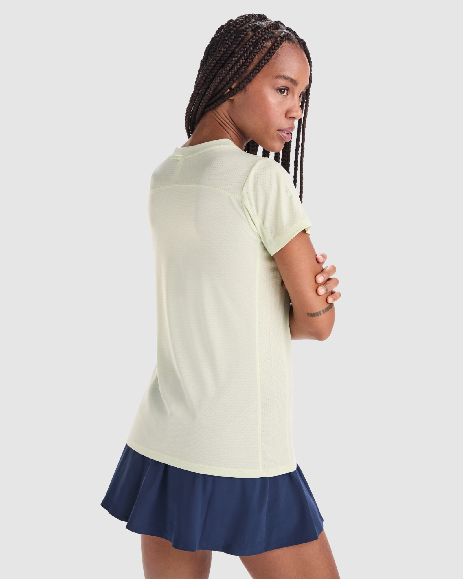 Camiseta técnica manga corta entallada transpirable. Roly Control Dry. Combinación de tejidos ligeros y elásticos en hombros, espalda y paneles laterales. Cuello cruzado redondo y cubrecosturas del mismo tejido al tono. Costuras adelantadas. Certificado GRS.