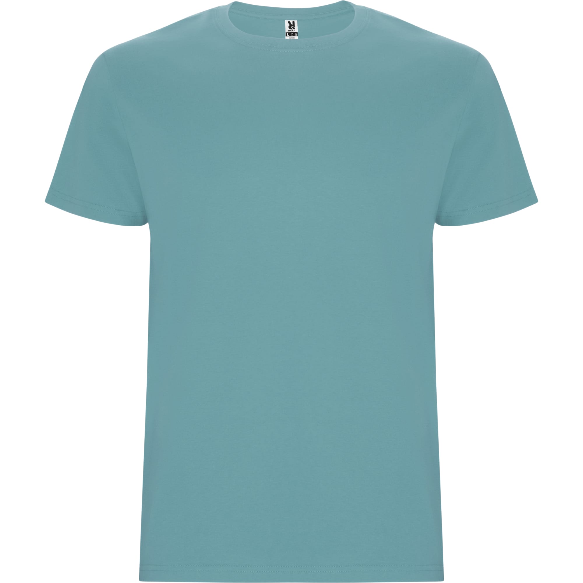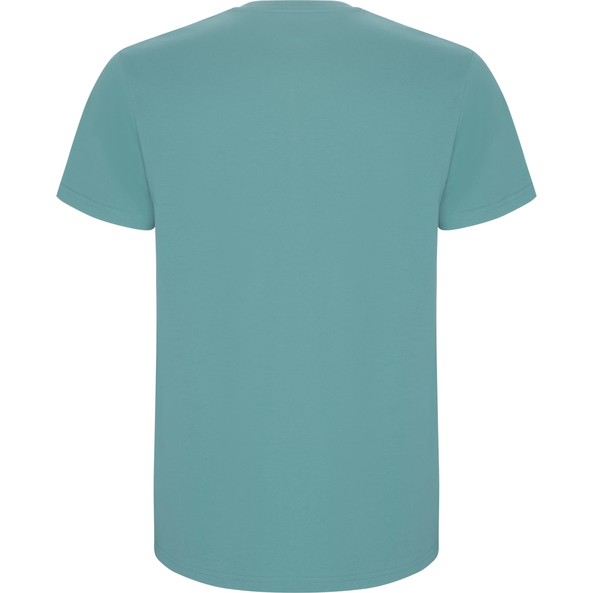 Camiseta de manga corta tubular en tallas de adulto y costuras laterales en tallas de niño. Cuello redondo en canalé 1×1. Cubrecosturas en cuello del mismo tejido.