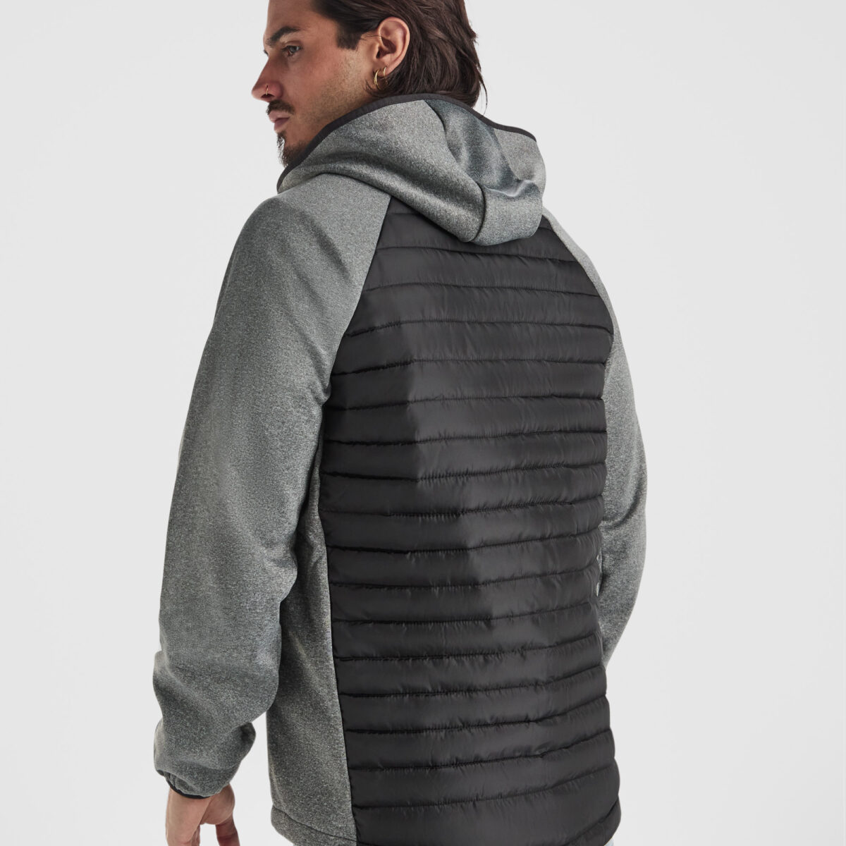 Chaqueta acolchada repelente al agua. Capucha extraíble con ajustadores. Cremallera frontal al tono. Protector de barbilla del mismo tejido. Puños y bajo en canalé 1×1. Bolsillos laterales con cremalleras al tono. Accesos externos en pecho izquierdo y espalda con cremallera invisible para reprocesos.