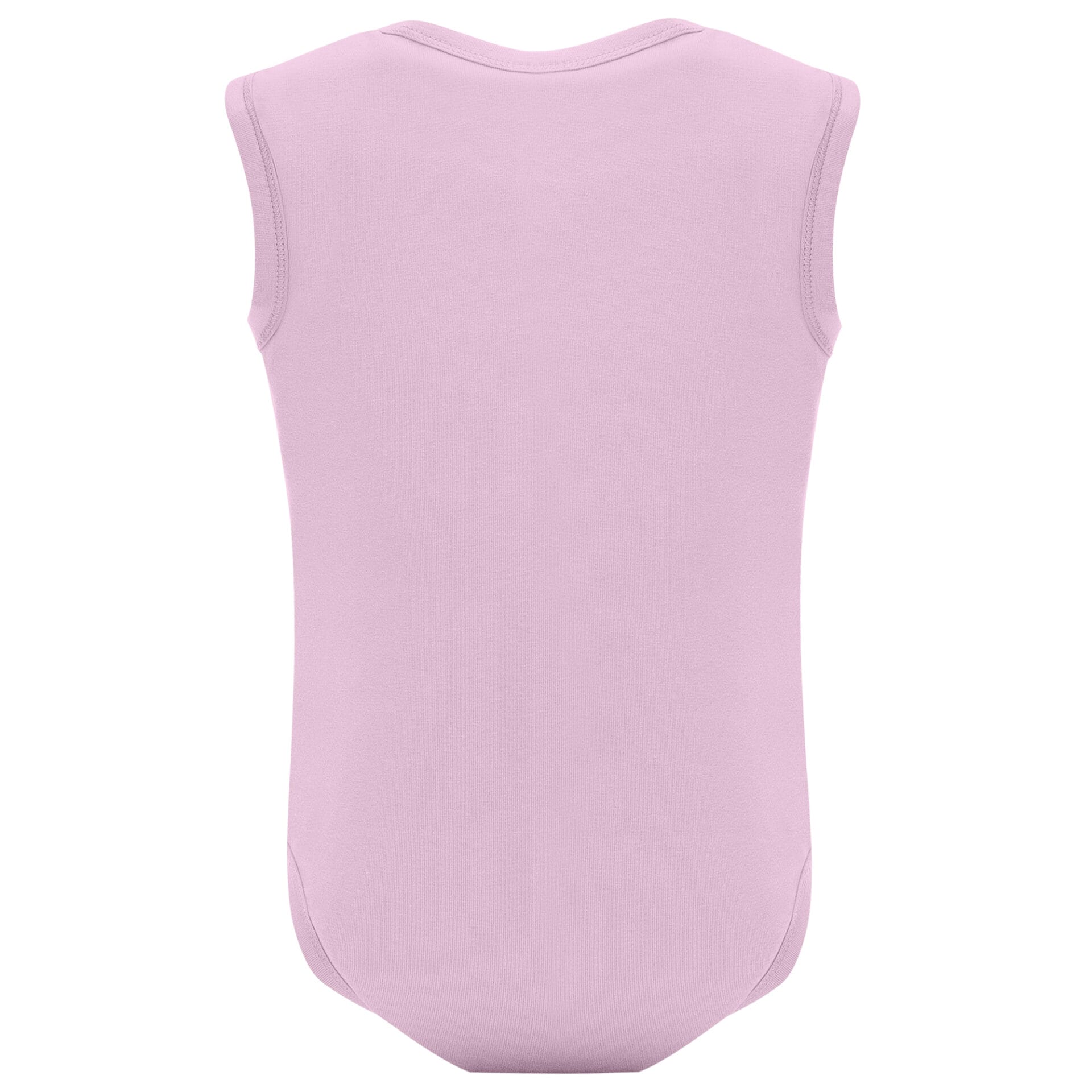 Body de bebé de tirantes de punto liso. Cuello redondo, sisas y bajo ribeteado en canalé 1×1. Cierre con botones a presión en la entrepierna. Hombro de apertura cruzada.