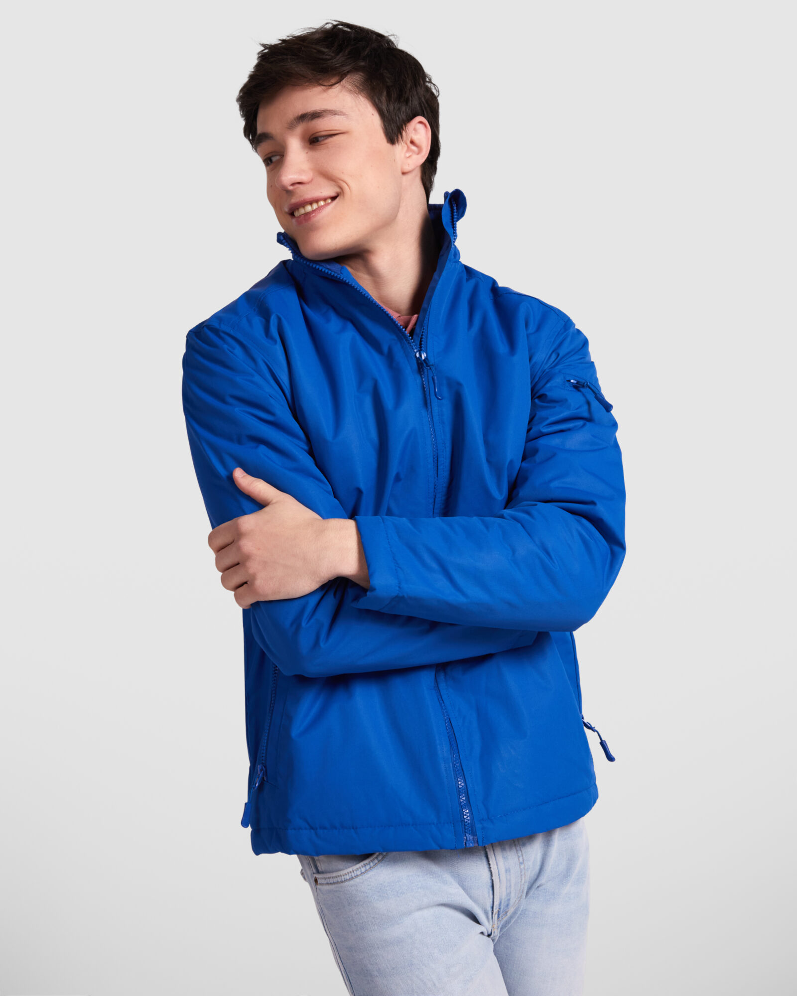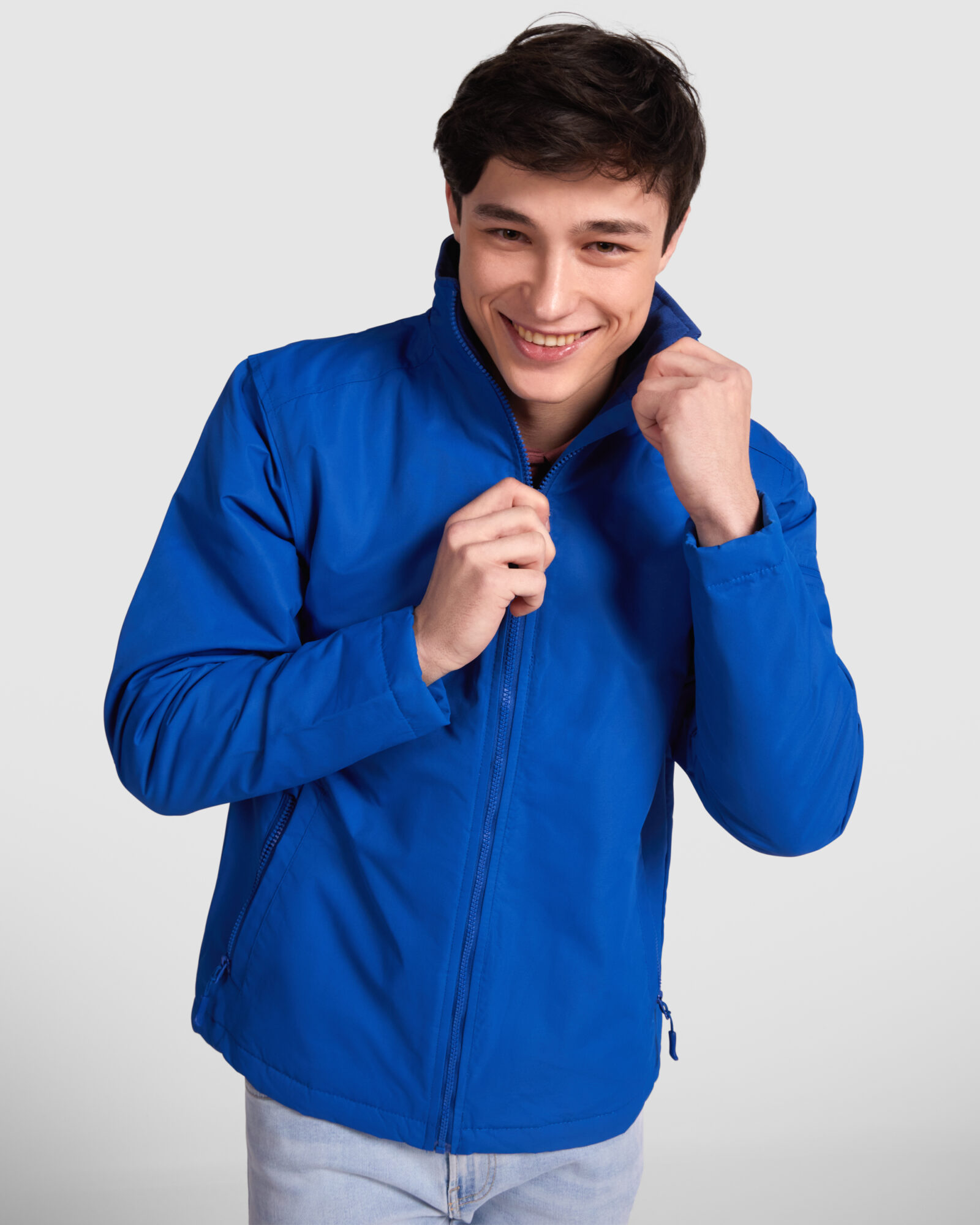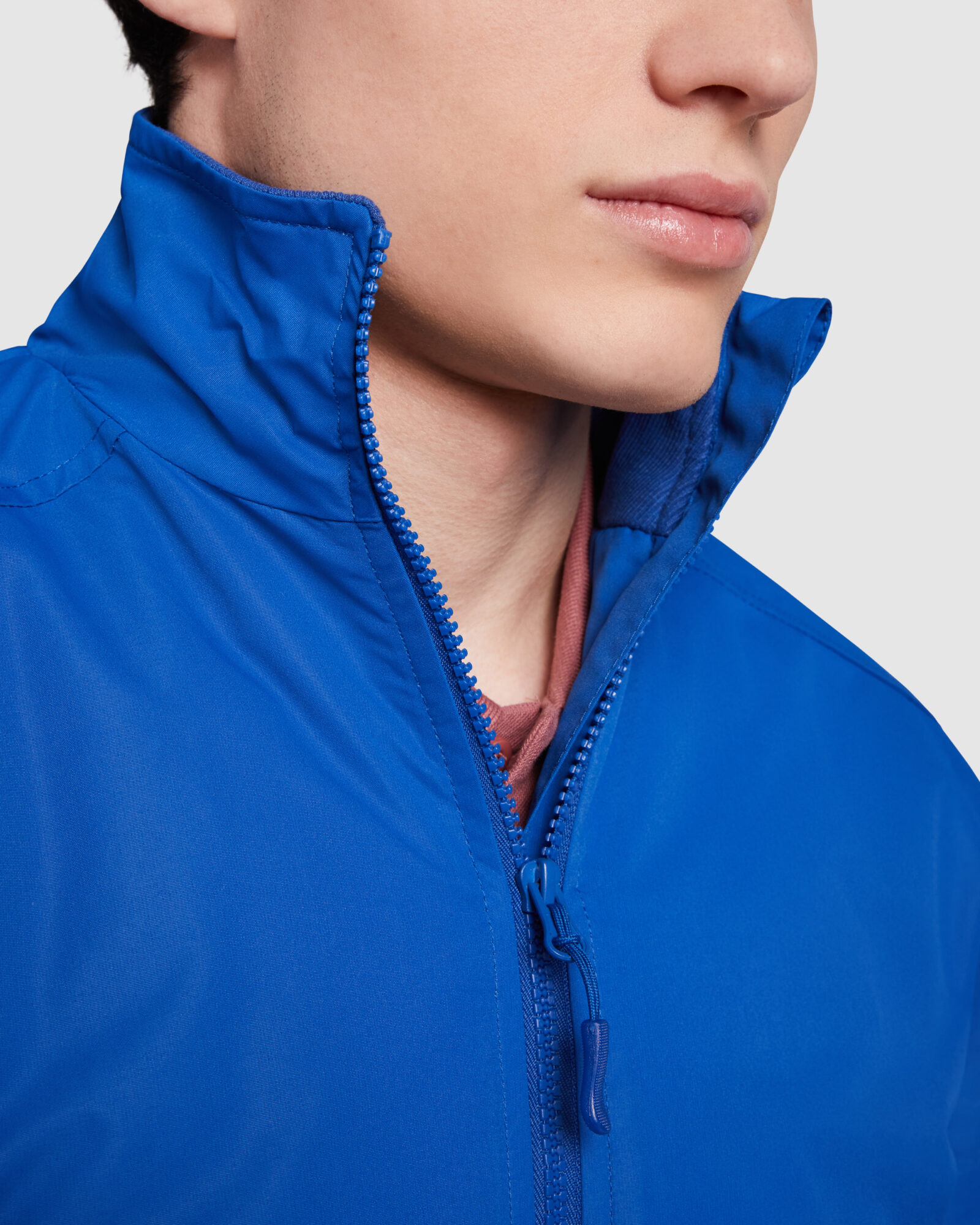 · Cremallera frontal a tono con protector de barbilla.