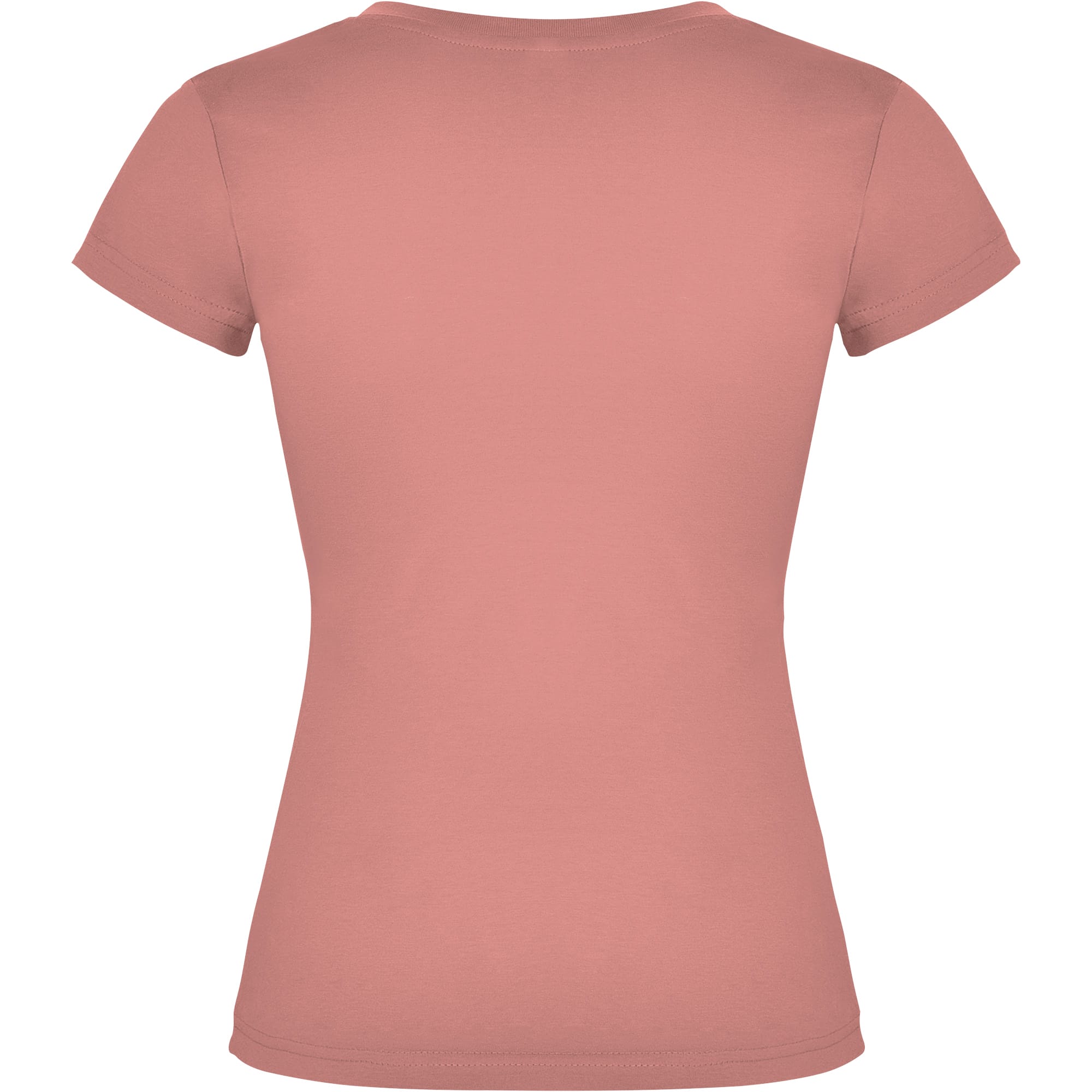 Camiseta de manga corta entallada en cintura. Cuello de pico en canalé 1×1. Cubrecosturas en cuello del mismo tejido.